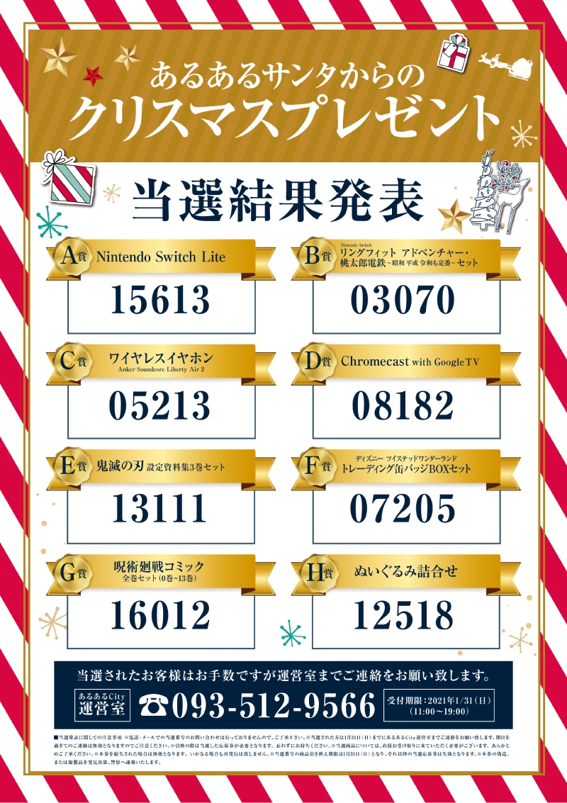 あるあるサンタからのクリスマスプレゼント当選発表‼…12/31追記