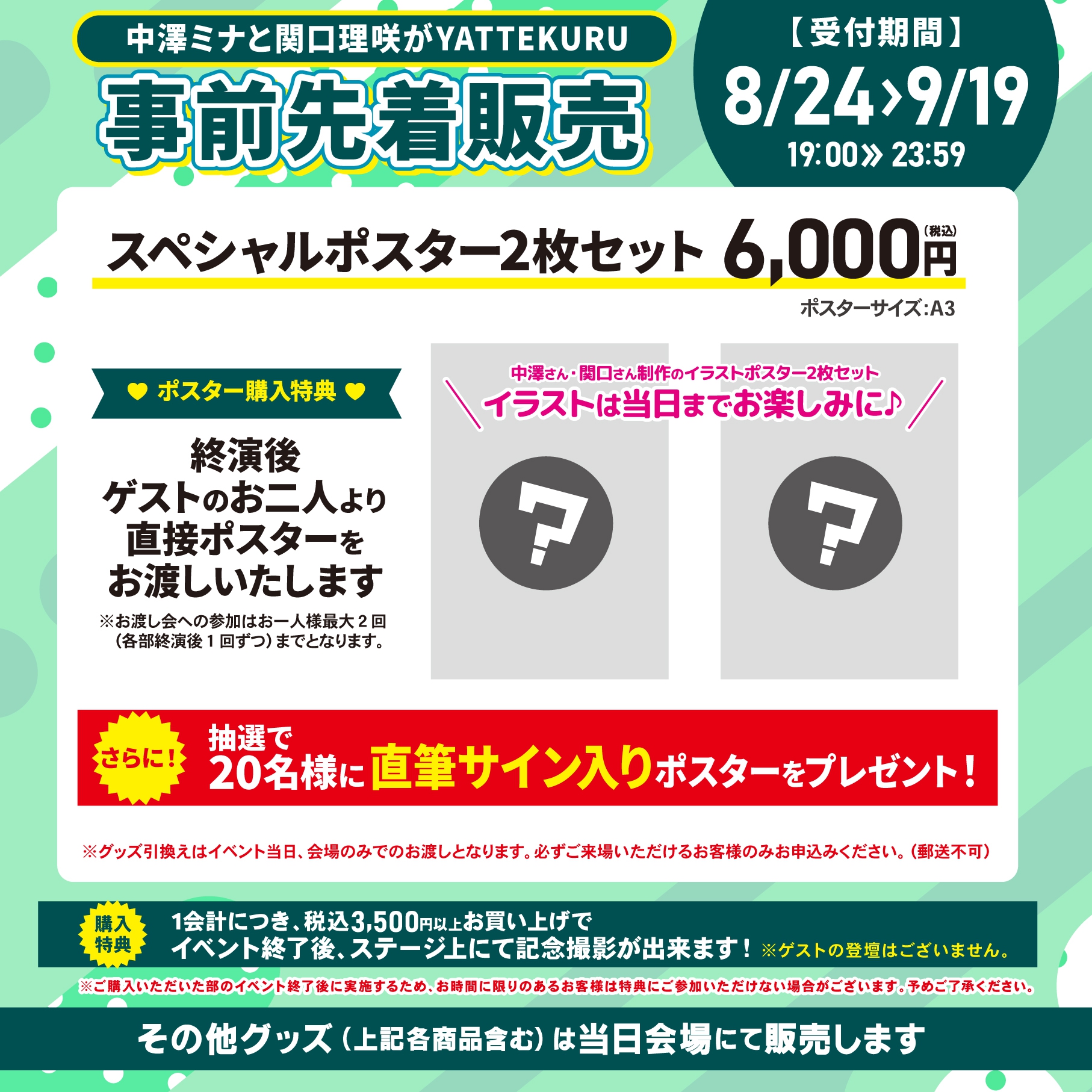 ※「スペシャルポスター2枚セット」は当日会場でも販売をおこないますが、数に限りがございますので売切れの際はご了承ください。