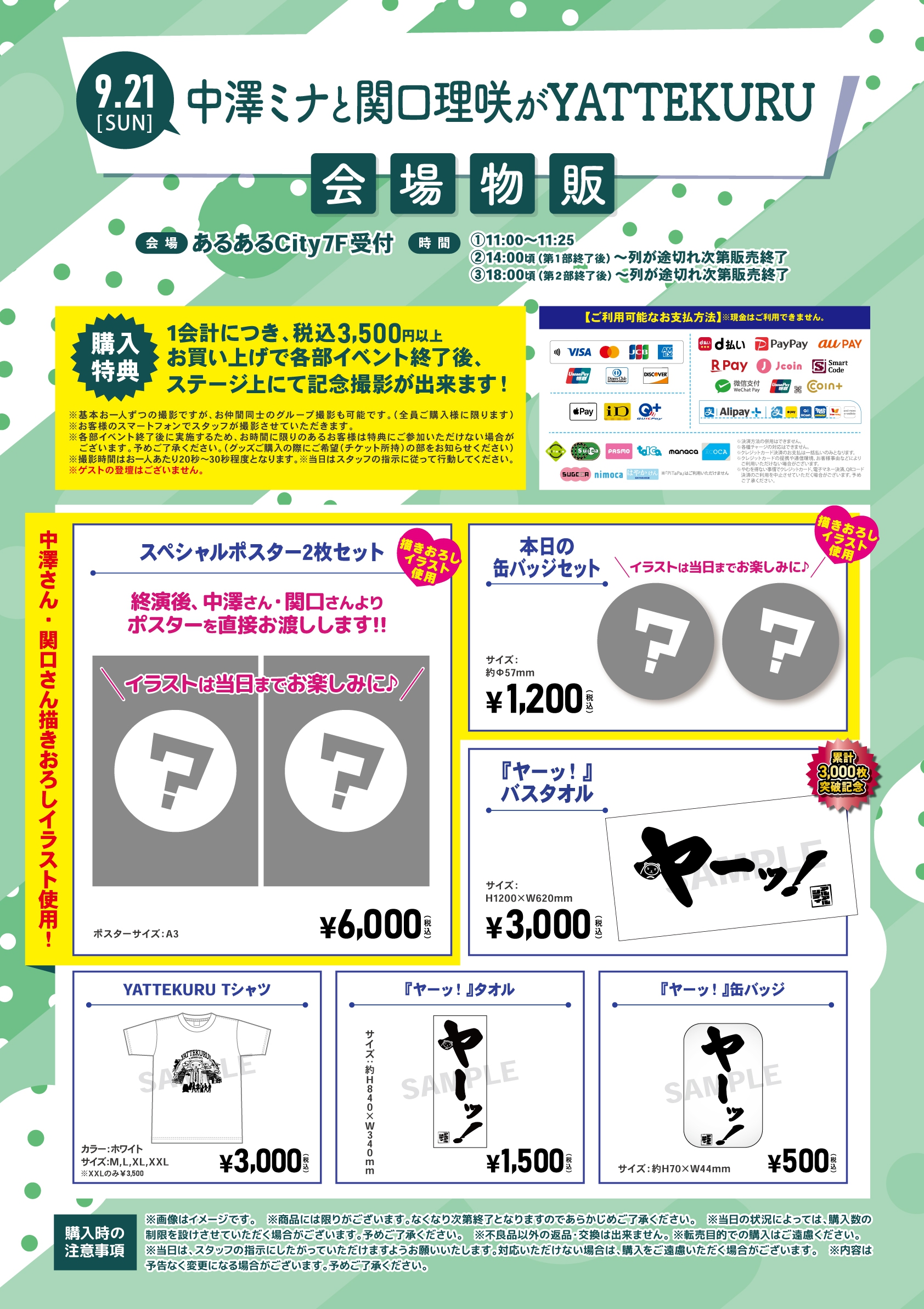 ※各部、9/21「中澤ミナと関口理咲がYATTEKURU」のチケットをお持ちのお客様が対象となります。