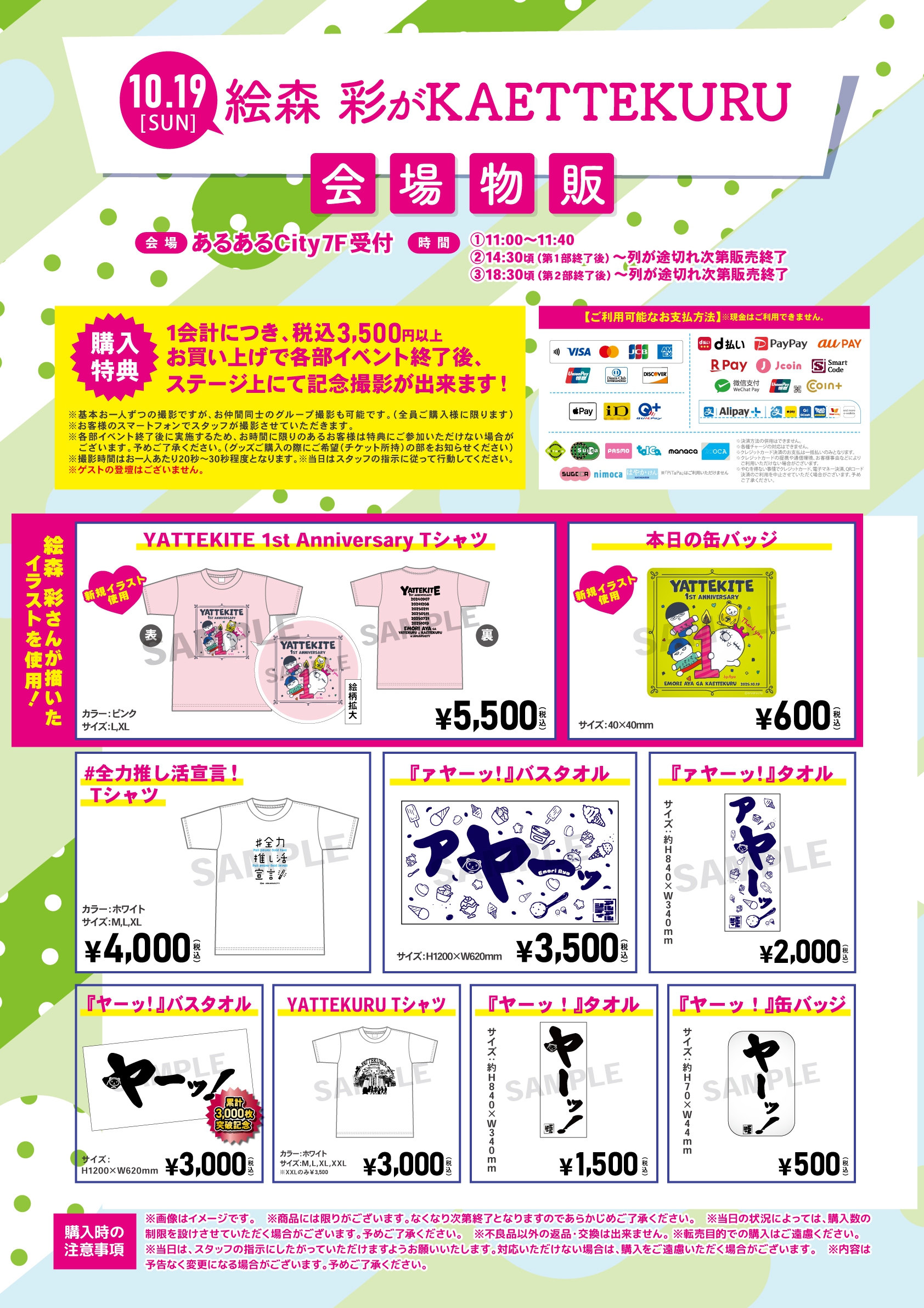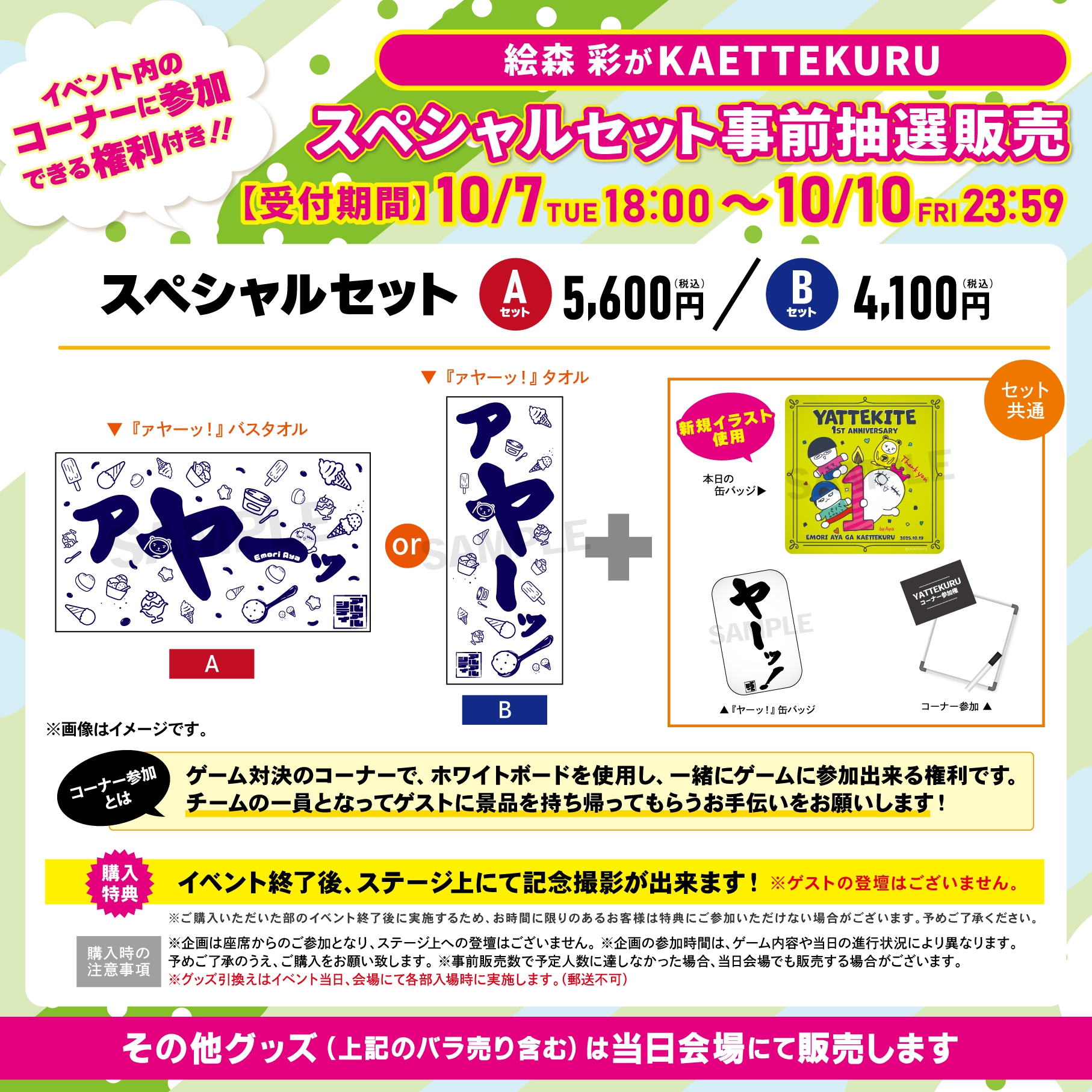 ※各部、10/19「絵森彩がKAETTEKURU」のチケットをお持ちのお客様が対象となります。