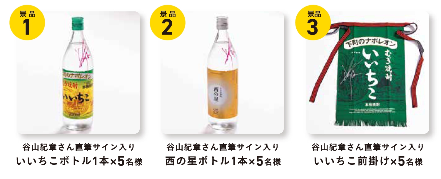 ①谷山さん直筆サイン入りいいちこボトル…1本×5名様