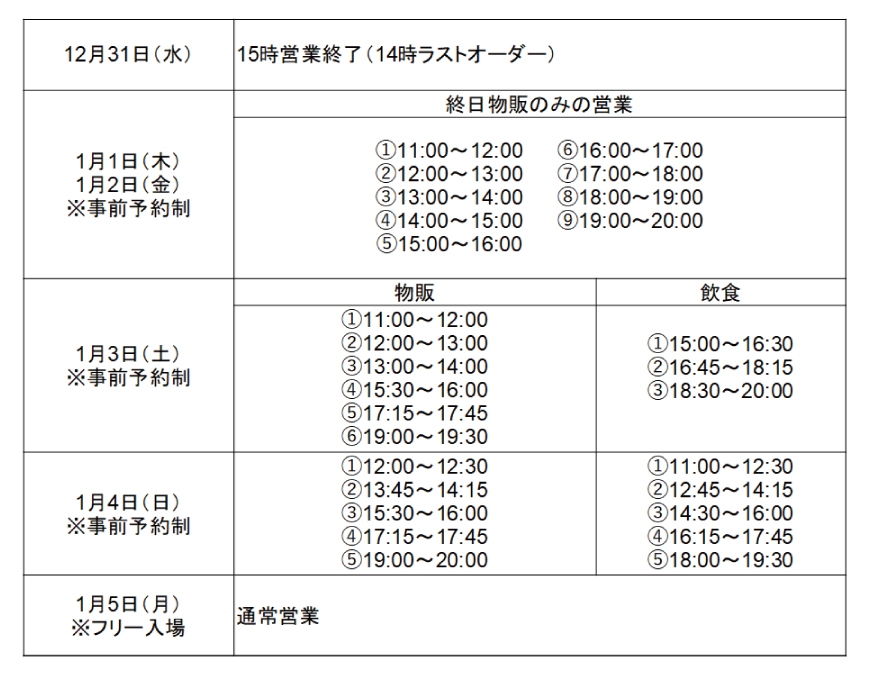 1月1日~2日:11時~19時
