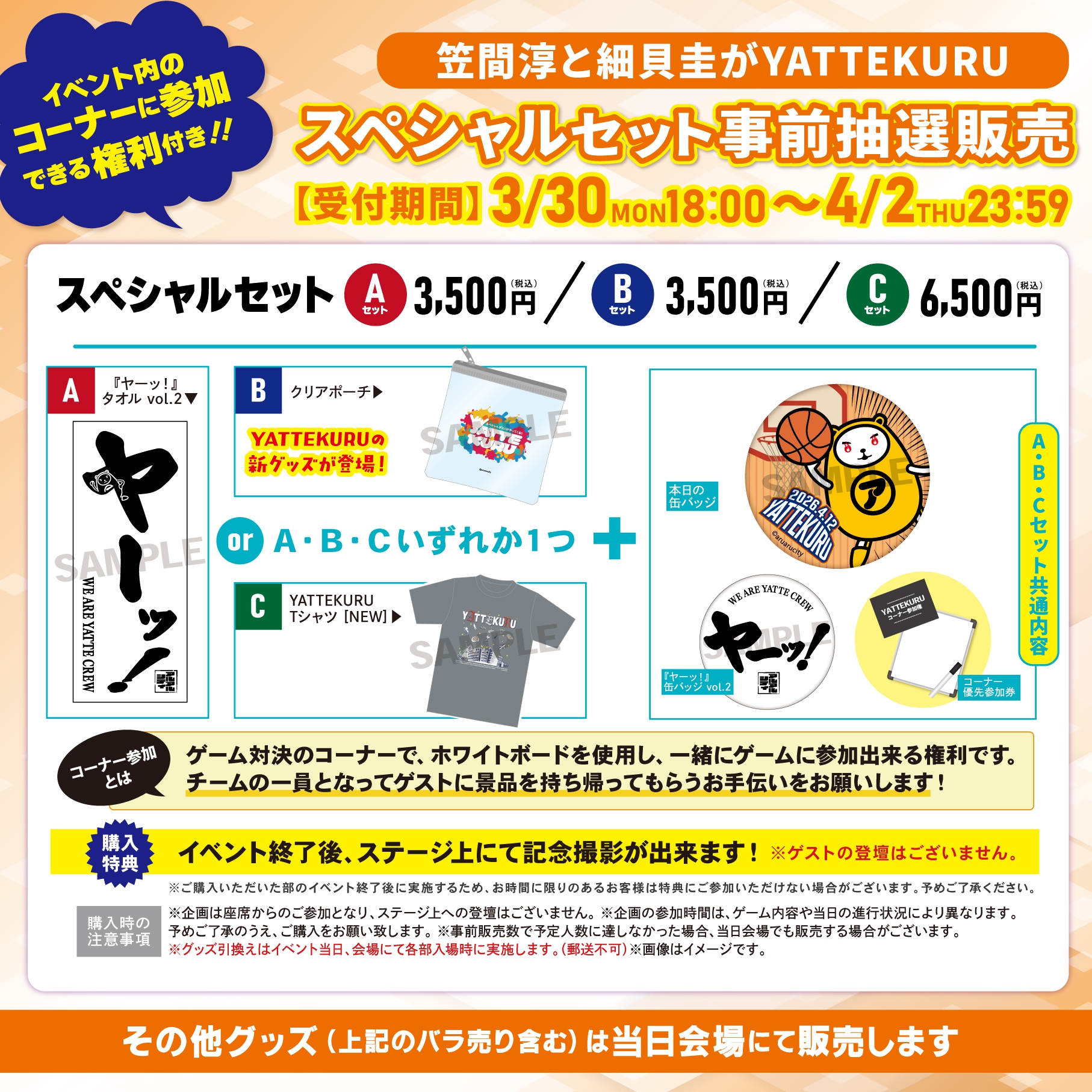 イベント内のコーナーに参加できる権利が付いた「YATTEKURUスペシャルセット」を事前販売致します!