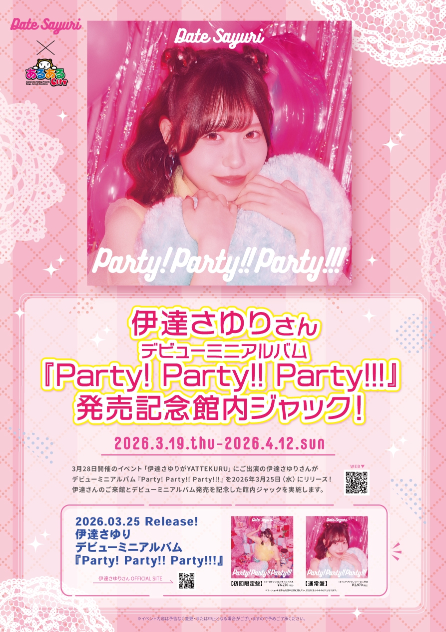 3月28日開催のイベント「伊達さゆりがYATTEKURU」にご出演の伊達さゆりさんがデビューミニアルバム『Party! Party!! Party!!!』を2026年3月25日(水)にリリース!
