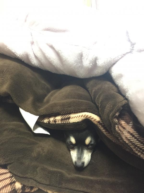 ふかふかの毛布に埋もれ、ウトウトしたところを激写しました!