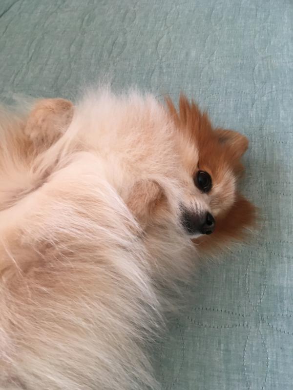 儚げな表情がたまりません♡♡わんこに乗られて動けなくなる気持ちとーってもわかります!わんこは最大の癒しですね!というわけで、テナント賞選ばせていただきました。おめでとうございます。