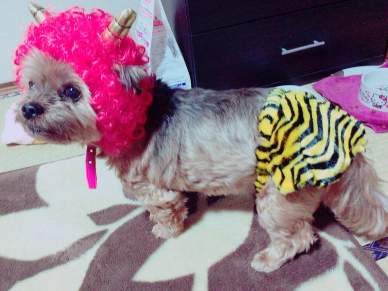 去年のですが、節分の時に撮りました。毎年、節分に着てくれます。みんなの癒しのもうすぐ17才のおばあちゃんわんこです。