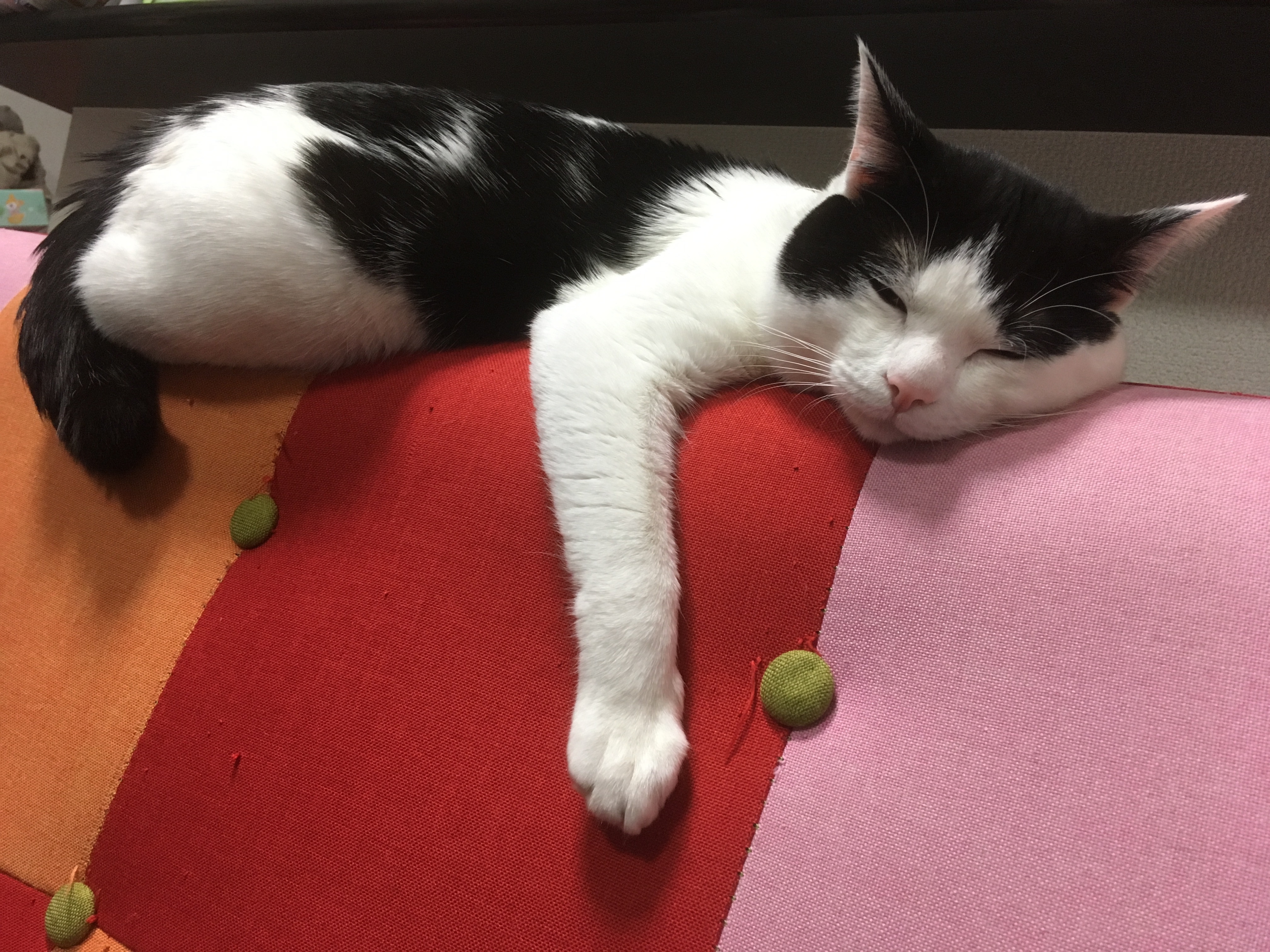 いつも、ソファーの上でこうやって寝てます。( ^ω^ ) 気持ち良さそうなので一枚とりました。 よろしくおねがいします。