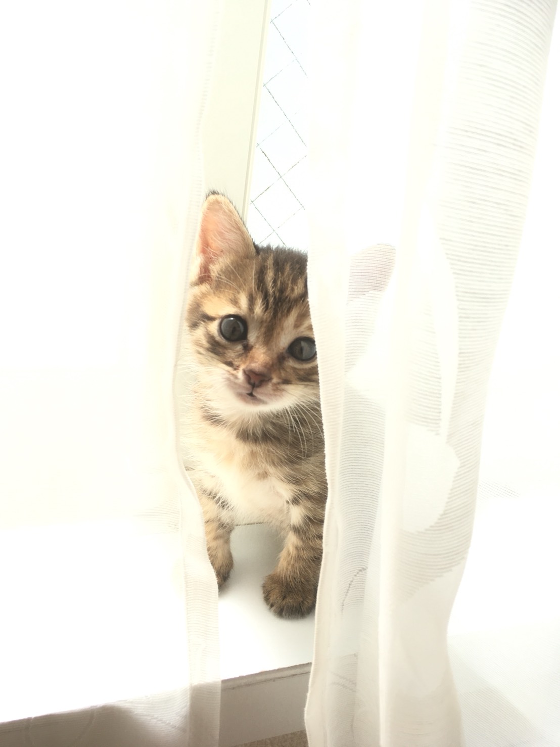 カーテンの向こうから覗いているのは天使♡ 我が家の大切な家族です。出逢えて良かった☆ 神さま、ありがとう。